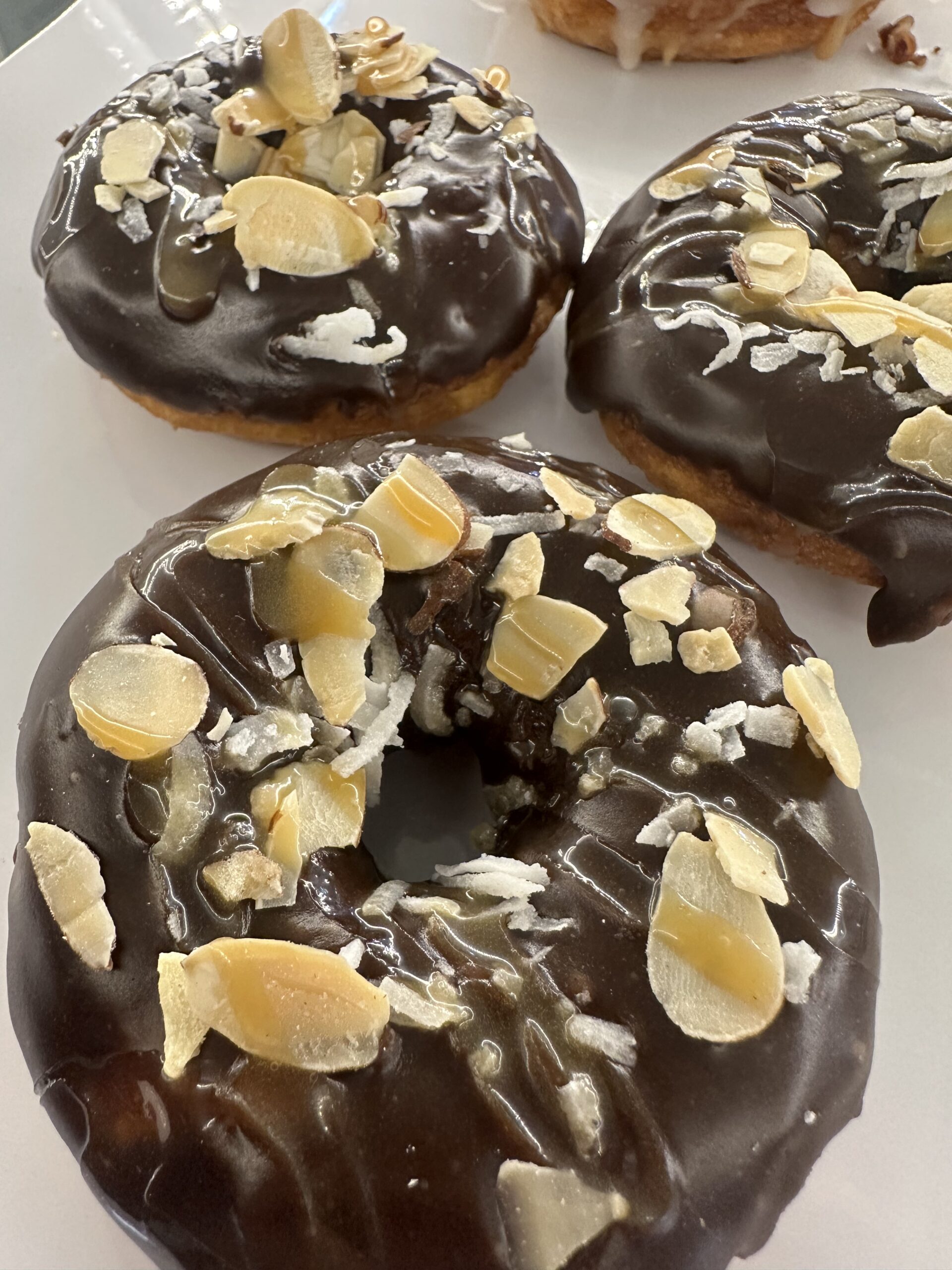 Vanilla Donut, Chocolate Glaze, Caramel Drizzle, Toasted Almonds & Coconut Shavings
