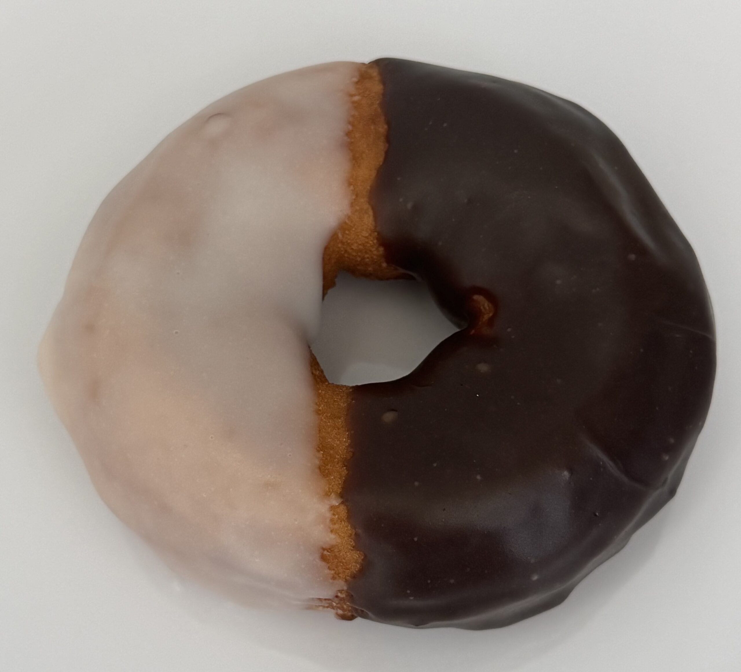 Vanilla Donut Glazed Half with Chocolate other Half with Vanilla.