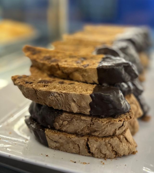 Double Baked Espresso Chocolate Chip Biscotti. Available individually or as a pack of four.