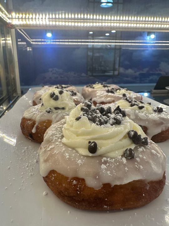 Vanilla Glazed, Cannoli Cream, Mini-Chocolate Chips and Powdered Sugar