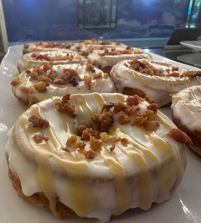 Vanilla Glaze, Maple Drizzle & Bacon Topping