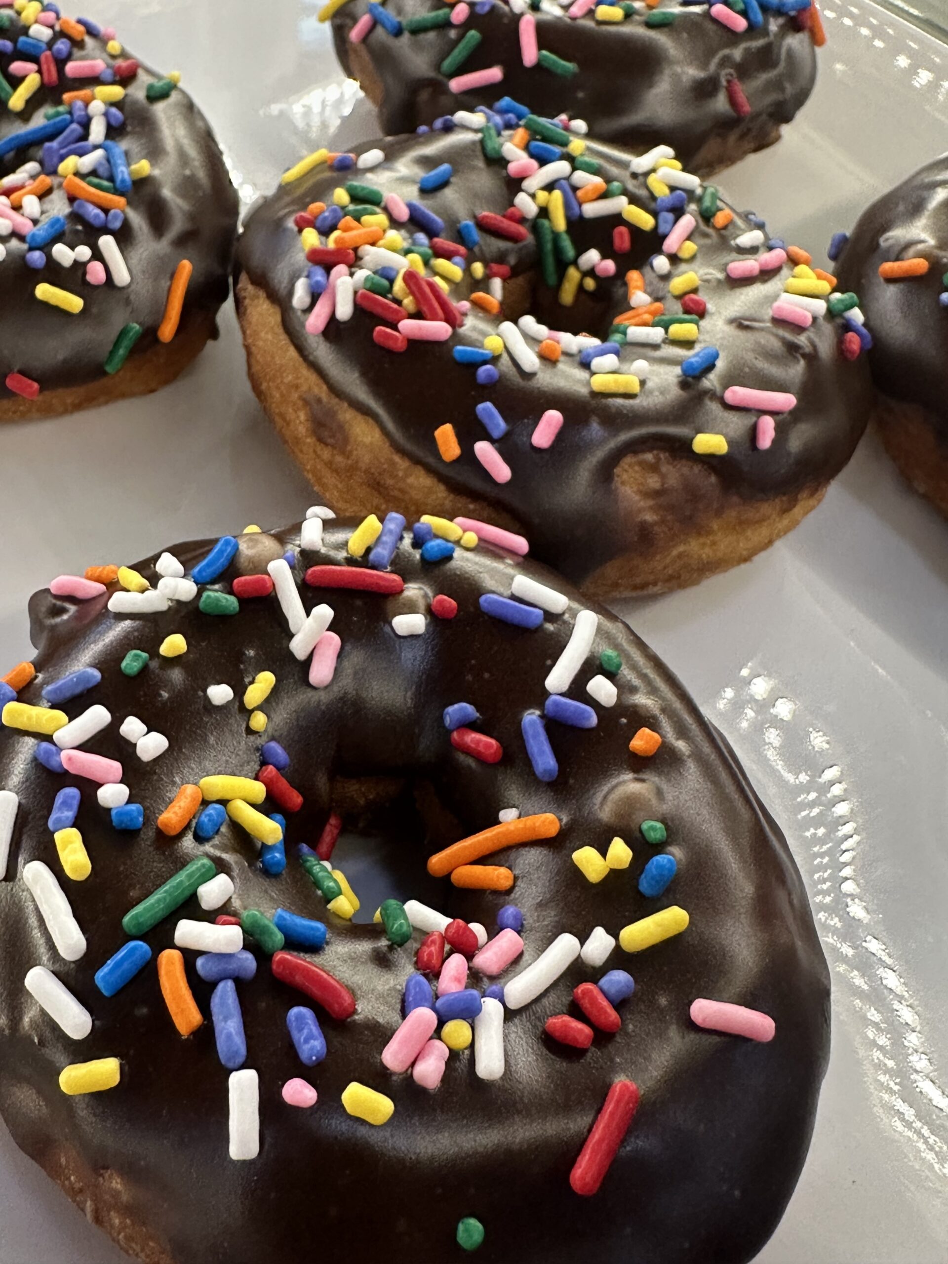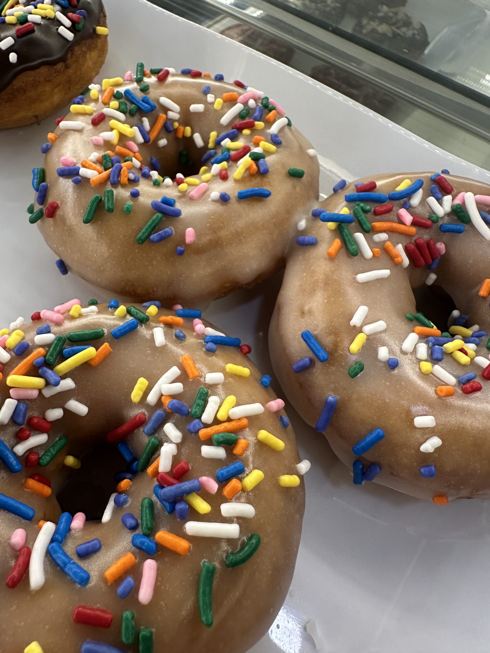 Vanilla Donut, Vanilla or Chocolate Glaze, Christmas Sprinkles.